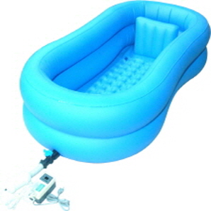 기본 사양 1. 욕조 - 재질 : 항균PVC 가로 : 85cm 세로 : 185cm 높이 : 37cm 2. 펌프 - 출력 : 220V, 50/60Hz, 150W 용도 : 공기 주입,배출 무게 : 620g 3. 샤워기 - 기능 : 직사, 분사, 잠김 (조절식) 재질 : ABS 무게 : 246g 4. 샤워기 호스 - 길이 : 5m 기능 : 호스 조이개 2개 재질 : 메탈 5. 배수 호스 - 길이 : 5m 용도 : 배수 시 사용 재질 : PVC주름관 6. 부착식 등머리 받침 - 재질 : 항균PVC 용도 : 목욕 시 받침용 기능 용도 1) 노인 환자의 목욕을 도와주는 제품 2) 거동이 불편한 노인 환자가 자신이 거주하는 방에서 외부로의 이동 없이 간편하게 목욕이 가능한 제품 사용 방법 • 평평하고 이물질이 없는 장소에서 사용할 것. • 안전 동작 하중을 초과한 자에게 사용하지 말 것. • 사용자의 신체 상황에 따라 수발자가 옆에 있을 것. • 욕조를 잡고, 일어나거나 앉지 말 것. • 좌면이나 바닥에 접하는 부분 미끄러짐 주의. • 한 번에 한 사람 만 사용할 것. • 사람이 욕조안에 있을때 적정 물 사용 높이를 지킬것. • 강한 물리적 압력 등이 가해지지 않도록 할 것. • 송곳이나 날카로운 도구가 닿지 않도록 할 것. • 배수용 호수를 배수구나 화장실 등에 연결 할 것. • 사용 시 응급 상황 발생 시 배수 밸브를 열어 물을 빼주십시오. • 사용 후 욕조는 매번 세척하고 주기적으로 소독할 것. • 사용하다 이상이 발견되면 본사로(아래 A/S연락처) 연락 할 것. |